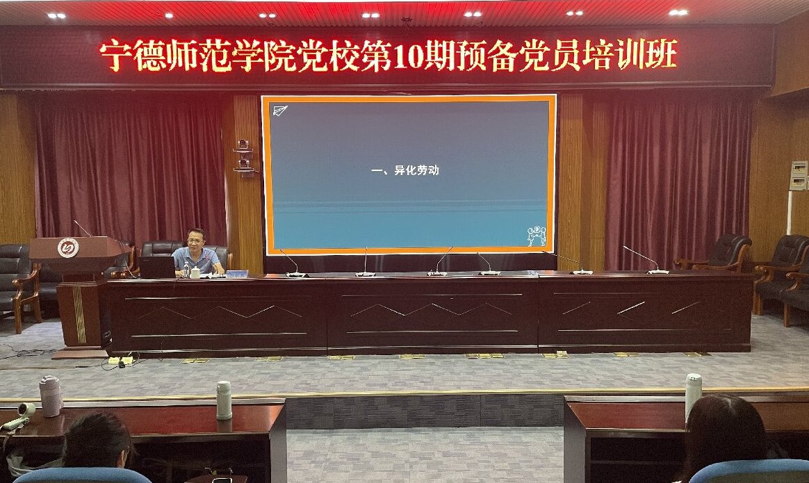 马克思主义学院教师郭斌慧以经典著作解读的方式,介绍了《1844 年经济学哲学手稿》概况,深刻阐释了异化劳动的理论实质和当代价值,引导预备党员加强对马克思主义哲学的学习,树立正确的世界观、人生观、价值观。