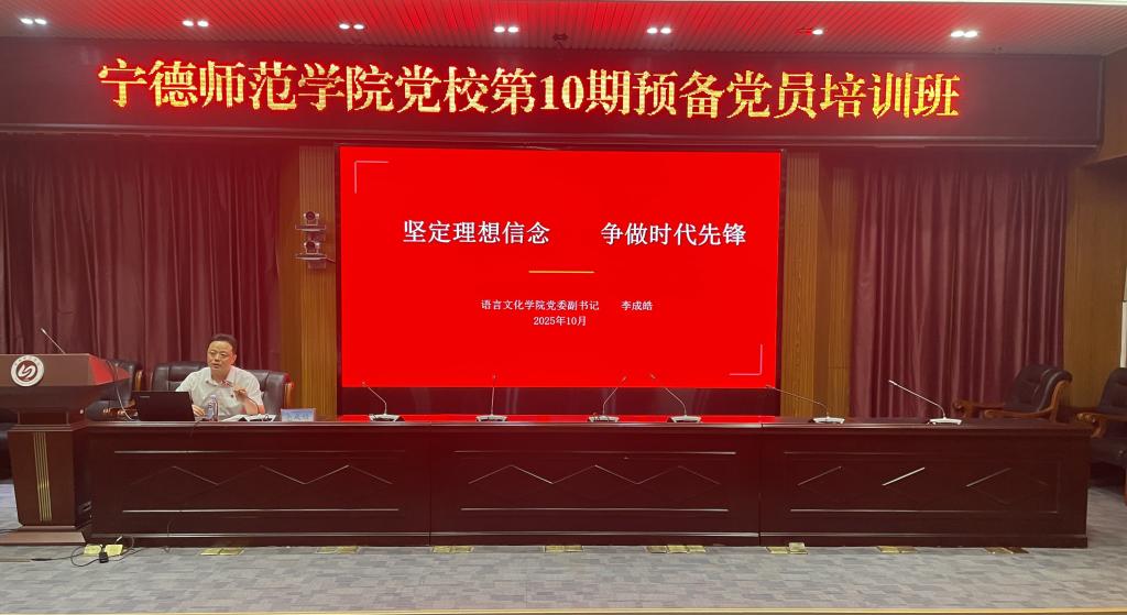 语言文化学院党委副书记李成皓结合工作经历,围绕“为何入党、为党做什么、怎样做合格党员”三问,阐明了党员要将个人成长与学校发展、闽东振兴、国家富强紧密结合,用实际行动践行初心使命、铸牢信仰之基。