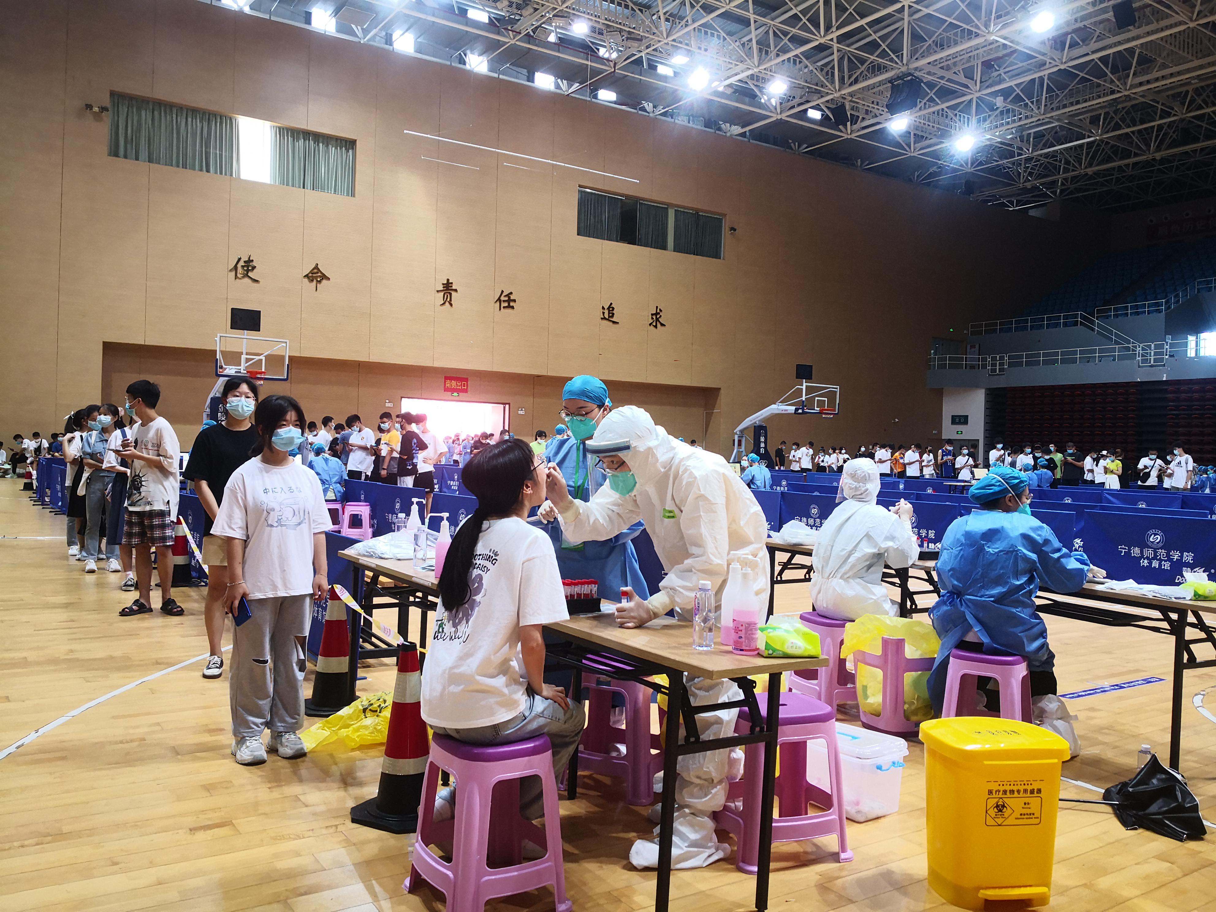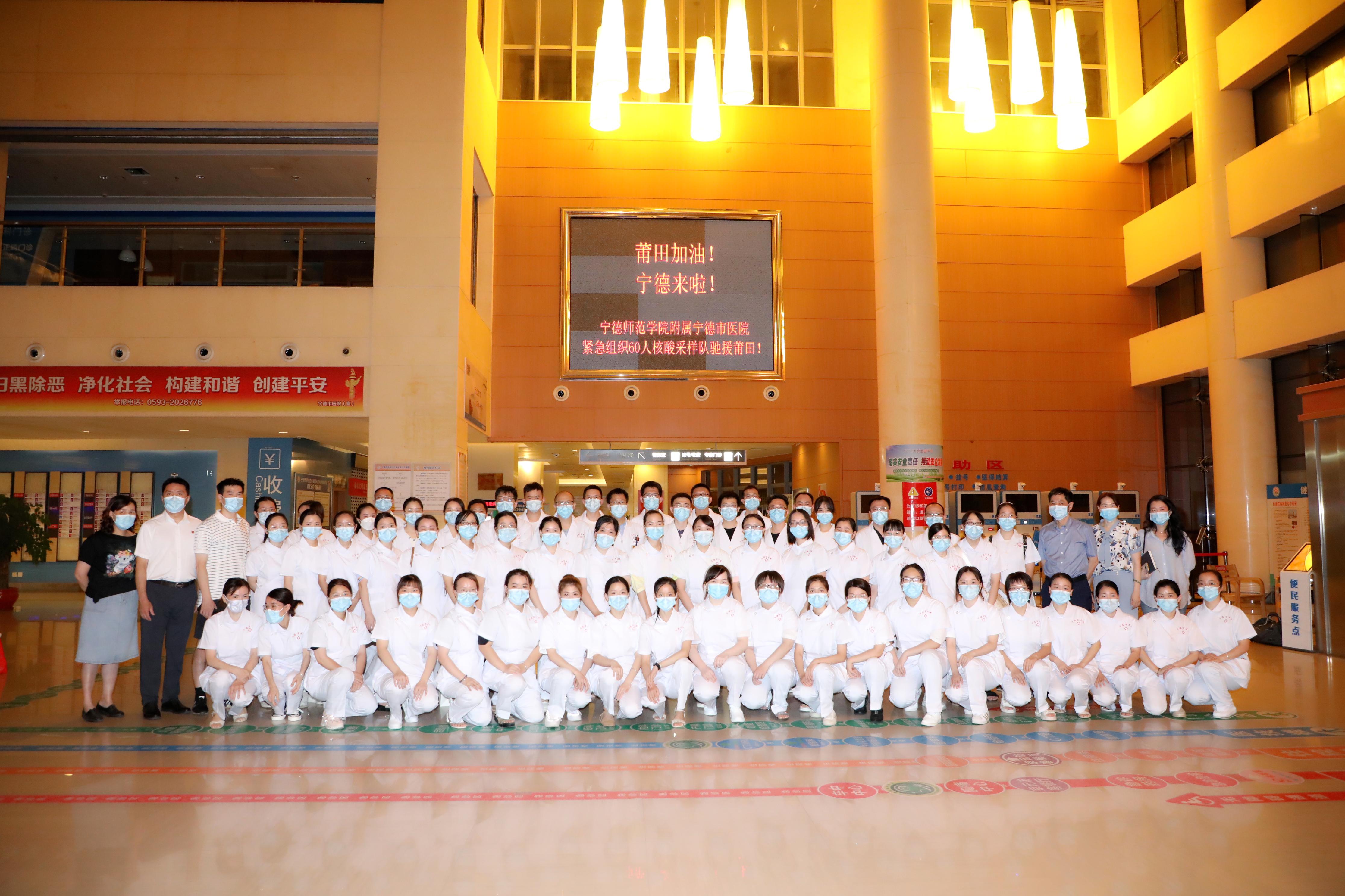 宁德师范学院附属宁德市医院发挥医学优势和医务工作者的专业特长,组织力量、调集精兵,紧急驰援莆田,同心抗疫,共画最大同心圆。9月12日以来共集结了61名以党员骨干为主的核酸采样队驰援莆田,从接到上级通知到出征仅用了2个多小时,派出的核酸采样人员均为医院各临床科室有丰富经验的精兵强将。“第一次充满了未知,而这次我们有经验,准备得更加充分,也更有信心了!”曾经驰援武汉的护士黄婷婷、陈丽英表示。在队伍里,有不畏艰难、冲锋在前的党员医护人员,还有一对携手同行的医护“夫妻档”,在他们的身上体现了医者仁心、救死扶伤的革命人道主义精神,践行了白衣战士的初心和使命。